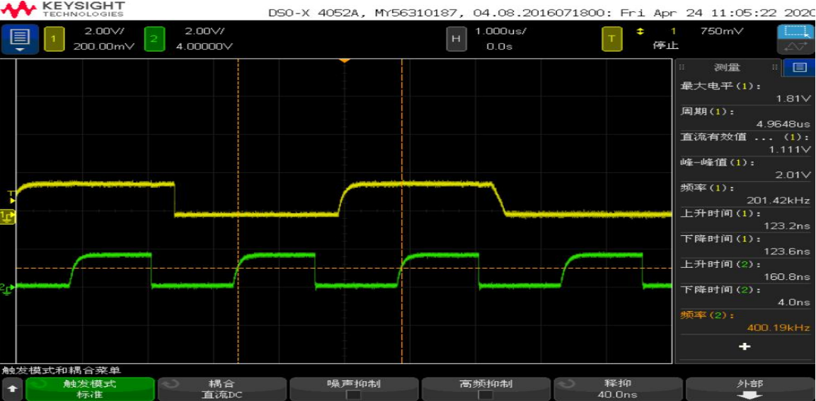 I2C作为摄像头与主控芯片或者测试盒的控制通道,其信号波形的质量决定了信号的准确度和速度。在实际测试应用中,有些模组与测试盒之间的距离较长,导致信号有衰减,I2C的波形上升或者下降较慢,影响了通讯质量和稳定性。尤其是OTP大规模数据烧录时,会表现得更为突出。