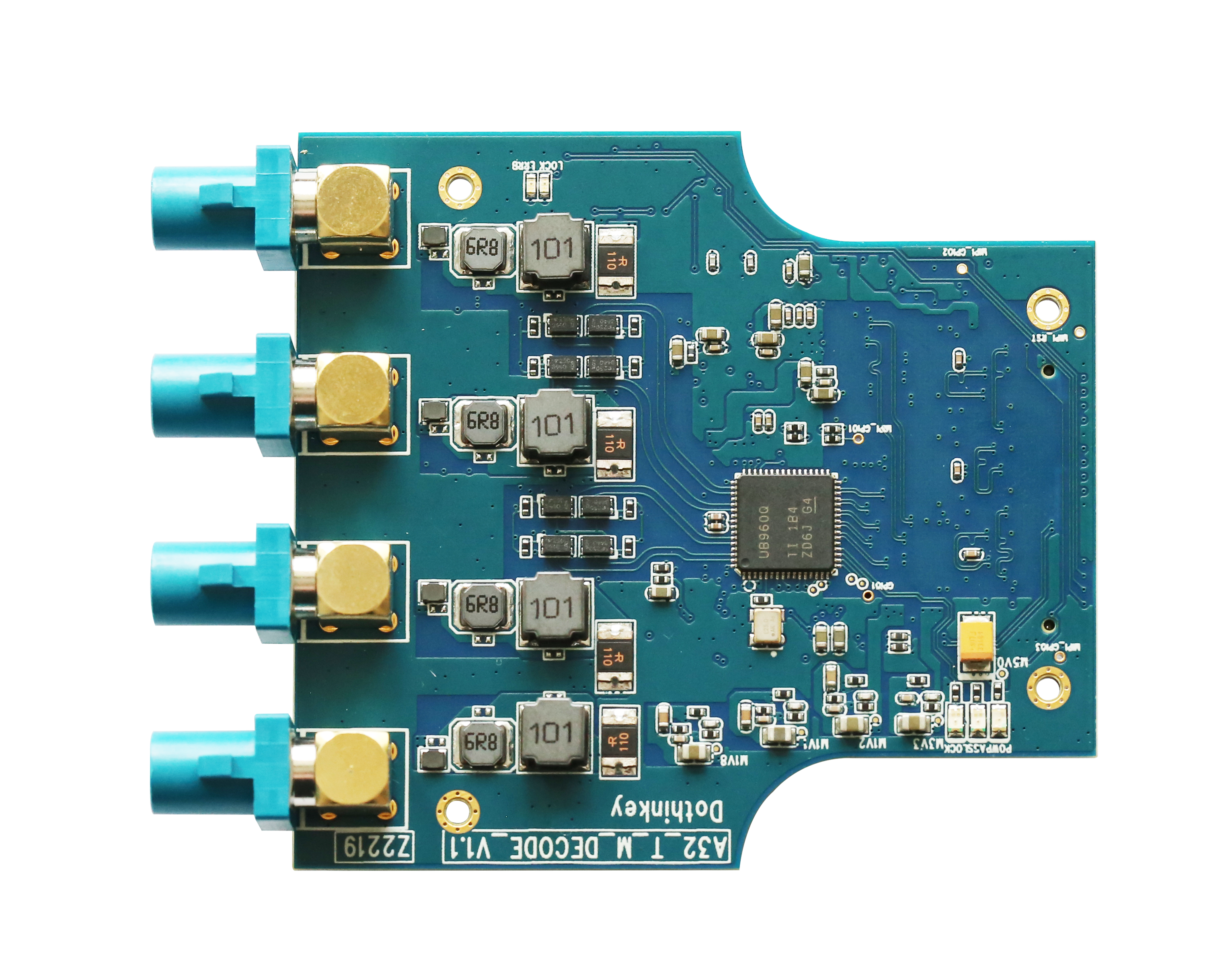 1.CC16/CC16Pro测试盒专用解串板,有4路信号输入口,可接入4个摄像头模组;
